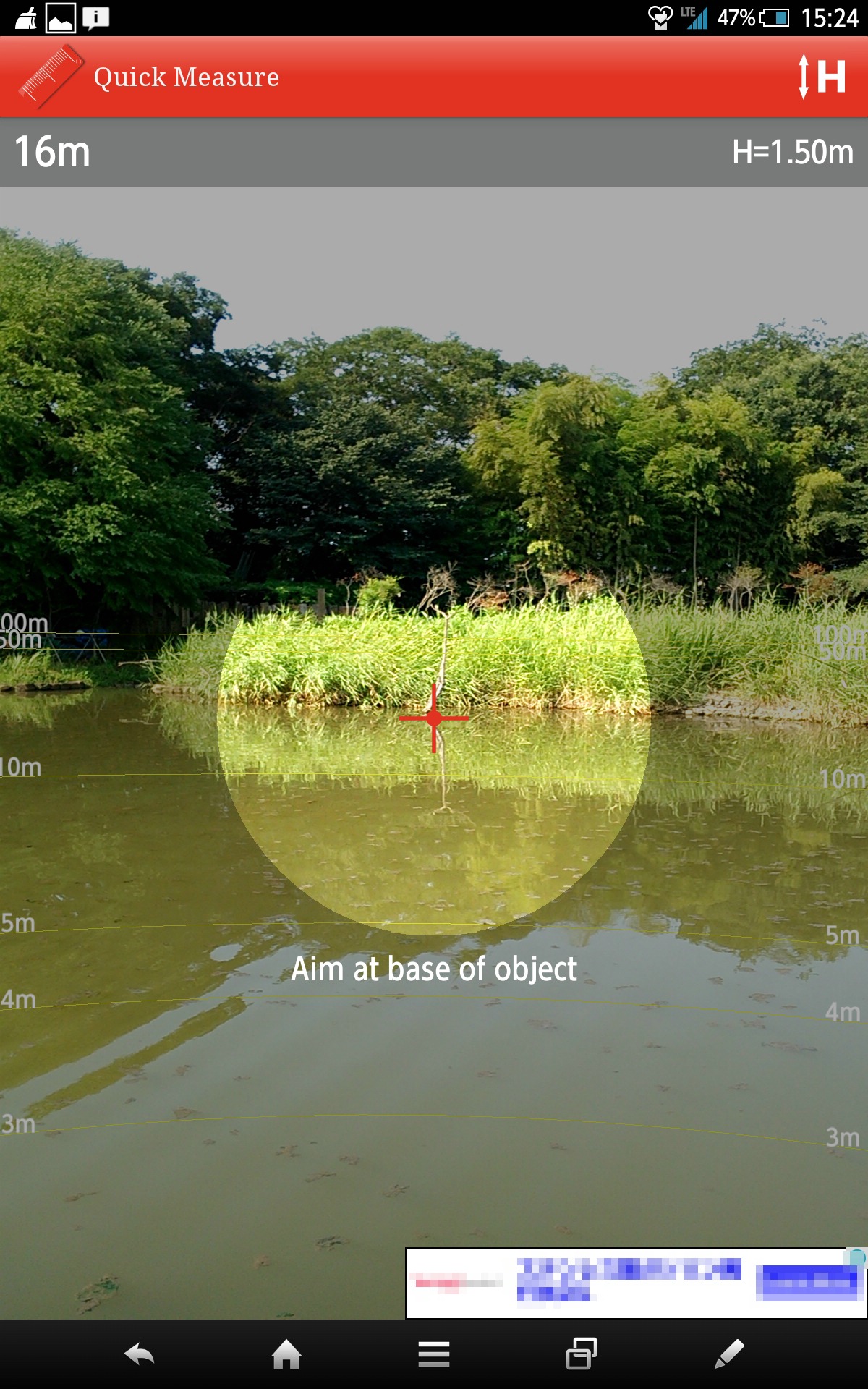 このクイック測定というアプリ、内蔵カメラを使い三角法で距離を測定してくれるアプリなのです。